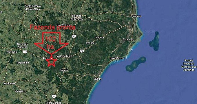 Fazenda 102 ha Distrt. Argolo, Nova Viçosa / BA - Brasil